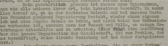 „[rein geschäftlich gesehen […] kein lukratives Geschäft. Es kommt darauf an, ob in der deutschen Kolonie und bei unsren Costa Rica Freunden genügend Begeisterung besteht, wieder einen eigenen Klub und eine eigene Schule zu haben, und nicht bolss [sic!] der Enthusiasmus vorhanden ist, sondern auch der Wunsch und Wille, an seinen Errichtungen mitzuhelfen und zu arbeiten.” (Abb. 8).